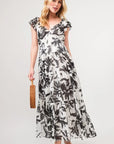 And The Why Ruffled Sleeve Tiered Floral Print Maxi Dress