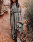 Introducing the Arey Overall Dress . This back tie overall dress boasts hip pockets and a subtle print, perfect for effortlessly layering. Elevate your wardrobe with this simple and exclusive piece, perfect for everyday wear.