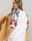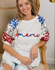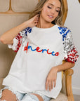 BiBi America Letter Applique Spangle Puff Sleeves Top