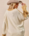 BiBi Cable Knit With Hacci Combo Sweater With Uneven Hem Detail