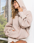 BiBi Stitch Detailed Elastic Hem Half Zip Fleece Hoodie