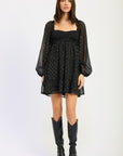Emory Park Long Sleeve Smocked Baby Doll Mini Dress