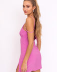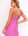 Introducing our Strap Detail Mini Dress, a chic and versatile addition to your wardrobe. This dress features an alluring back tie detail that adds a touch of sophistication and allows for a customized fit. The mini slip design ensures comfort and ease of movement.