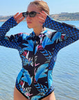 Leaf Printed Long Sleeve Half Zip UPF50 Rash Guard