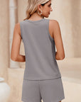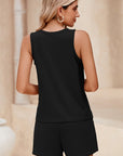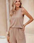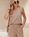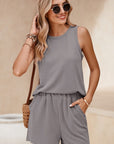 Elevate your casual wardrobe with this refined Sleeveless Top and Pocketed Shorts Set. Crafted for effortless style and comfort, the sleeveless top offers a sleek silhouette that transitions seamlessly from day to evening. Complementing it perfectly, the tailored shorts feature practical pockets, adding both functionality and a touch of relaxed elegance. This set embodies a sophisticated yet approachable look, ideal for warm weather or layered ensembles, ensuring you feel confident and polished wherever your day takes you.