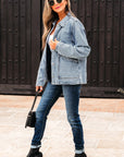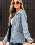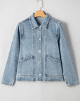 Solid Denim Scallop Collar Patch Pocket Buttoned Jacket