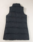 This vest offers windproof protection without compromising comfort. Its extended length provides extra warmth and a sleek, elongating silhouette. Equipped with a full-length zipper for effortless wear and practical pockets to keep essentials secure and hands warm, it’s ideal for layering and maintaining a polished look in cold weather. 100% Polyester