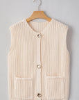 Featuring convenient side pockets and button detailing, this vest combines practicality with fashion-forward design.