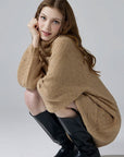 Chic & Functional Design: Features a turtleneck, relaxed fit, and raglan long balloon sleeves with ribbed trims, combining style with functionality.