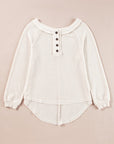 Waffle Knit Buttoned Front Raglan Sleeve Blouse