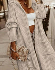 Feature: Long Cardigan, Hooded Cardigans, Chunky Knit, Loose Sweater Coat, Two Side Pockets, Solid Color Cardigan, Soft and Warm Coat
