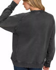 Zenana Acid Washed Fleece Sweatshirt with Side Rib in Black