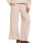 Zenana Ribbed Round Neck Pullover and Drawstring Pants Set in Beige