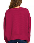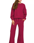Zenana Ribbed Round Neck Pullover and Drawstring Pants Set in Cabernet