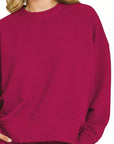 Zenana Ribbed Round Neck Pullover and Shorts Set in Cabernet