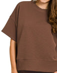 Zenana Ribbed Round Neck Tee & Pants Set in Brown