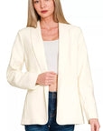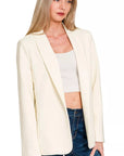Zenana Woven Long Sleeve Blazer With Lining in Cream